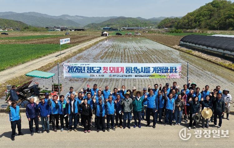 광장일보 주재영 기자 | 청도군은 21일 이서면 금촌리 일원에서 (사)한국쌀전업농청도군연합회 주관으로 2026년 첫 모내기 행사를 개최하고 본격적인 영농철의 시작을 알렸다.
