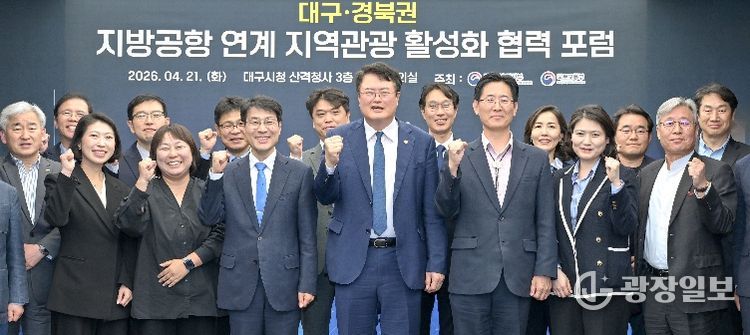 광장일보 주재영 기자 | 대구광역시는 4월 21일 시청 산격청사에서 김대현 문화체육관광부 제2차관 주재로 열린 ‘지방공항 연계 지역관광 활성화 협력 포럼’에 참석해 대구공항 연계 지역관광 활성화 방안을 논의했다.