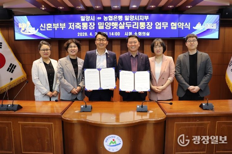 광장일보 주재영 기자 | 경남 밀양시는 21일 시청 소회의실에서 농협은행 밀양시지부와 ‘밀양햇살두리통장 지원사업’의 원활한 추진을 위한 업무협약을 체결했다.