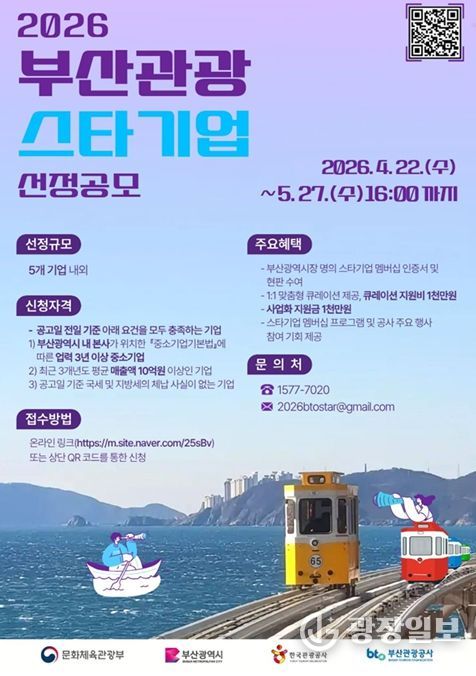 광장일보 주재영 기자 | 부산시와 부산관광공사는 부산관광기업지원센터가 외국인 관광객 500만 시대를 선도할 지역 관광산업의 핵심 주역을 발굴하기 위해 '2026 부산관광 스타기업 공모'를 실시한다고 밝혔다.
