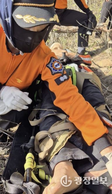 이번 사고는 21일 오후 3시 11분경 발생했으며, 등산 중이던 요구조자가 약 10m 아래로 추락해 허리 통증과 발가락 감각 이상을 호소하며 자력 하산이 불가능한 상황이었다.