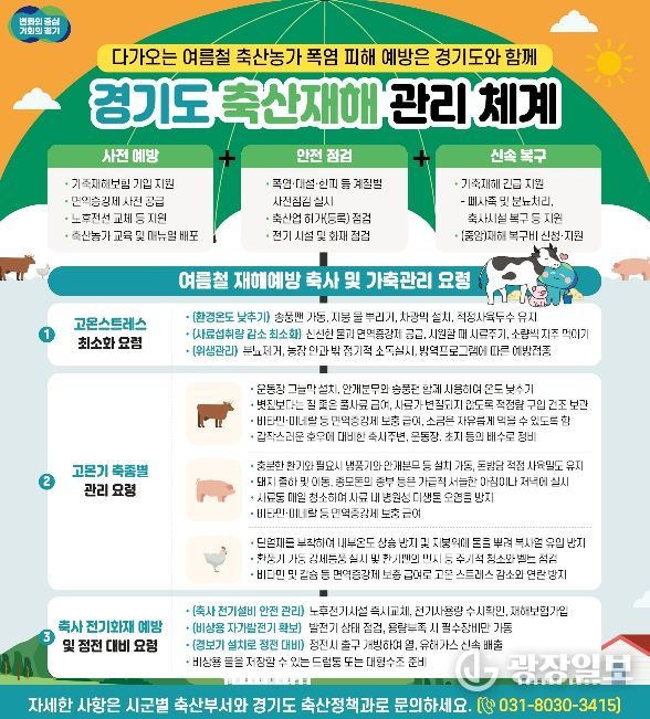 광장일보 주재영 기자 | 경기도가 올여름 무더위로부터 축산농가를 보호하기 위해 예산 지원과 현장점검을 아우르는 전방위적 대응에 나섰다.