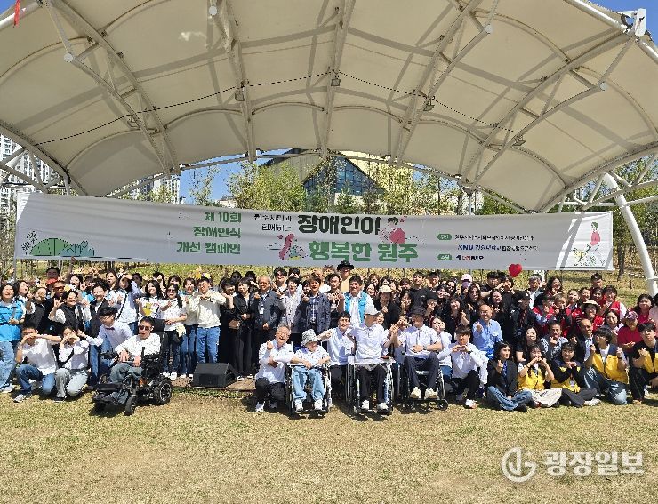 광장일보 이현나 기자 | 원주시지역사회보장협의체 장애인분과는 장애인의 날을 기념해 지난 18일 기업도시 샘마루공원에서 개최한 장애인식 개선 캠페인 ‘장애인이 행복한 원주’를 성황리에 마쳤다.