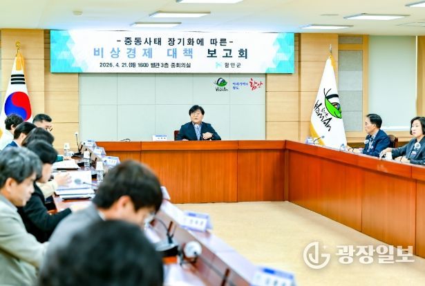 광장일보 주재영 기자 | 함안군은 중동전쟁 장기화에 따른 고유가와 원자재 수급 불안에 대응하기 위해 지난 21일 군청 중회의실에서 ‘비상경제 대책 보고회’를 개최하고 전방위 비상경제 대응체계를 가동했다고 밝혔다.