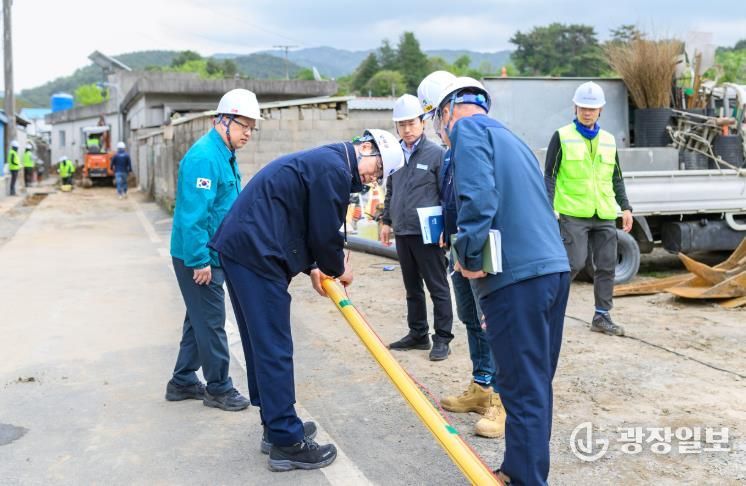 이날 장충남 군수는 공사 진행 상황과 공정율 및 향후 일정 등을 보고 받고, 공배관매설, 시공품질, 안전관리 이행 실태 등을 세밀히 점검했다.