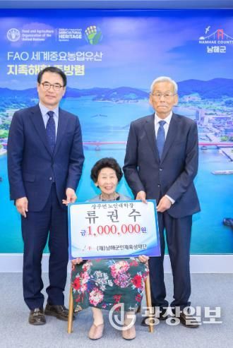 광장일보 주재영 기자 | (재)남해군인재육성재단은 올해 구순을 맞은 류권수 상주면 노인대학장이 100만 원의 인재육성기금을 기탁했다고 밝혔다.