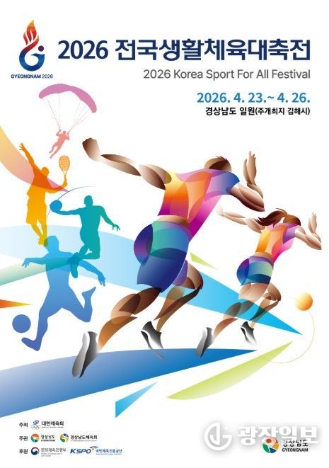 광장일보 주재영 기자 | 경상남도는 4월 23일부터 26일까지 4일간 김해시를 주개최지로 도내 15개 시군에서 ‘2026 전국생활체육대축전’을 개최한다고 밝혔다.