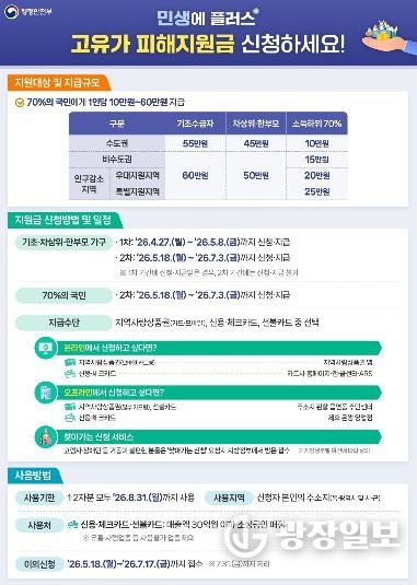 한편 장재혁 합천군수 권한대행은 “고유가 피해지원금 사용기한(2026.8.31.까지)과 경남도민 생활지원금 사용기한(2026.7.31.까지)이 상이함에 따라 군민들이 사용에 혼선이 없도록 당부드린다”며 “모든 군민이 빠짐없이 지원을 받을 수 있도록 업무 추진에 만전을 기하겠다”고 밝혔다.