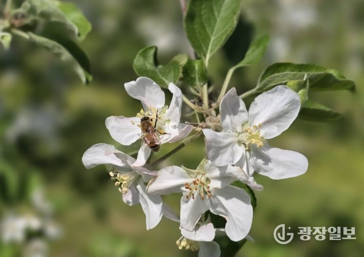 광장일보 주재영 기자 | 포항시 농업기술센터는 본격적인 사과 개화기를 맞아 꿀벌 등 화분매개곤충 보호와 안전한 농산물 생산을 위해 사과 적과제(카바릴수화제) 사용 주의를 당부했다.