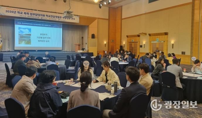 광장일보 주재영 기자 | 전라남도교육청은 22일 영암에서 전남경찰청과 함께 ‘2026. 학교폭력 업무담당자-학교전담경찰관 합동 역량강화 연수’를 열고, 학교폭력 예방과 사안처리를 위한 협력 강화에 나섰다.