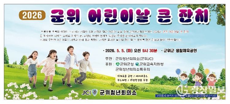 이번 행사는 2026년 5월 5일 오전 9시 30분부터 군위생활체육공원에서 열리며, 군위청년회의소(회장 김주환)가 주관한다. 행사에서는 아동 권리헌장 낭독과 모범어린이 시상을 시작으로, 18종의 체험부스 운영과 기념 공연이 이어질 예정으로 어린이와 온 가족이 함께 즐길 수 있는 다채로운 프로그램이 마련된다.