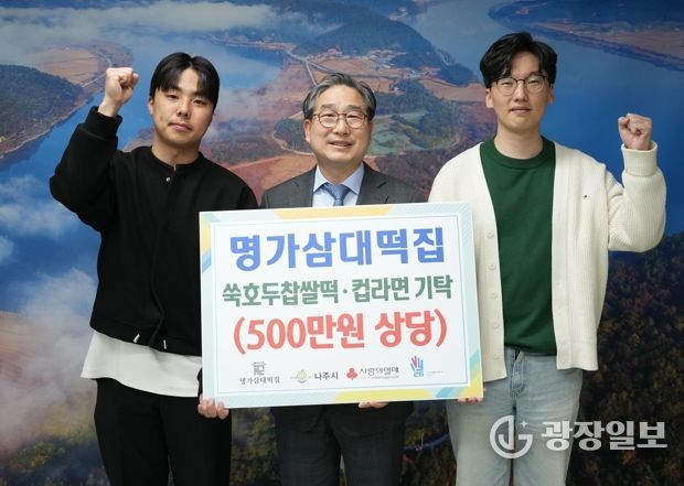 나주시는 전날 명가삼대떡집으로부터 쑥호두찹쌀떡 160박스와 컵라면 120박스를 기탁받았다고 22일 밝혔다.