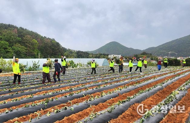 지난 4월 22일에는 연합회원과 남부면 지도자 회원 등 약 30명이 참여해 포장 피복 작업과 고구마 순 식재를 실시했다.