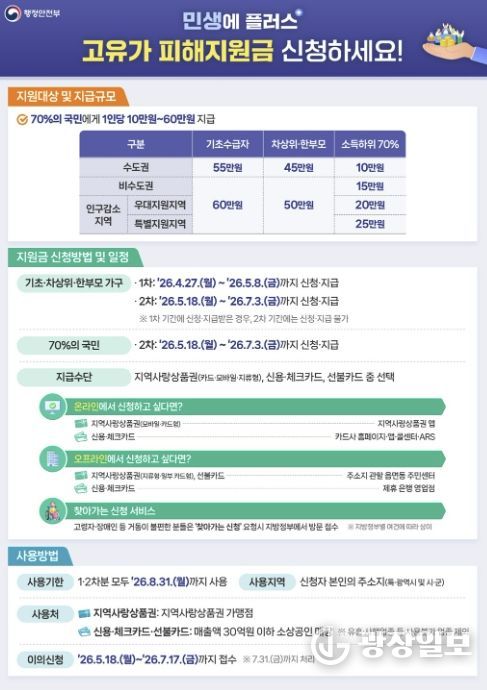 광장일보 이현나 기자 | 청주시는 고유가·고물가로 인한 시민 부담을 완화하고 지역 경제 회복을 지원하기 위해 오는 27일부터 ‘고유가 피해지원금’ 1차 신청·지급을 개시한다고 밝혔다.