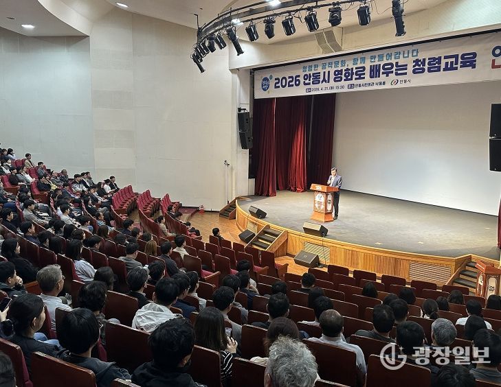 광장일보 주재영 기자 | 안동시는 4월 21일 안동시민회관 낙동홀에서 시 소속 공무원 및 공직유관단체 직원 380여 명이 참석한 가운데 ‘2026년 영화로 배우는 청렴교육’을 실시했다.