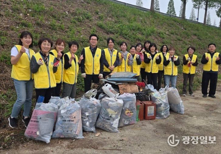 이번 활동은 봉사자 및 직원을 포함해 20여 명이 참여한 가운데 율대마을 도로사면 취약지역 일대에 산재해 있던 불법 투기 쓰레기 및 갓길에 방치된 농자재 폐기물을 수거했다.