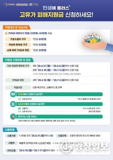 전해순 군 경제과장은 “이번 고유가 피해 지원금이 군민 생활 안정과 지역경제 활성화에 실질적인 도움이 되기를 기대한다”라며 “신속하고 공정한 지급이 이루어질 수 있도록 최선을 다하겠다”라고 말했다.