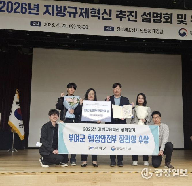 광장일보 나학천 기자 | 충남 부여군은 행정안전부 주관‘2025 지방자치단체 규제혁신 추진 성과평가’에서 행정안전부 장관 표창을 받았다고 23일 밝혔다.