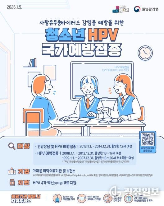광장일보 주재영 기자 | 경상남도는 2026년 5월 6일부터 12세 남성 청소년(2014년생)을 대상으로 사람유두종바이러스(Human Papillomavirus, HPV) 백신 국가예방접종 지원사업을 새롭게 시행한다고 23일 밝혔다.