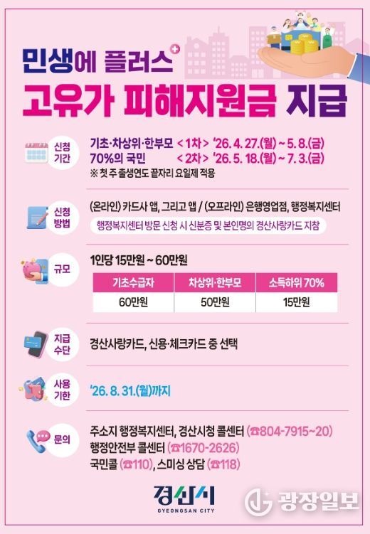 경산시장 권한대행 이도형 부시장은 “고유가·고물가로 어려움을 겪는 시민들이 체감할 수 있도록 신속하고 정확한 지급에 최선을 다하겠다”며, “읍면동과 긴밀히 협력해 빈틈없는 지원이 이뤄지도록 하겠다”고 말했다.