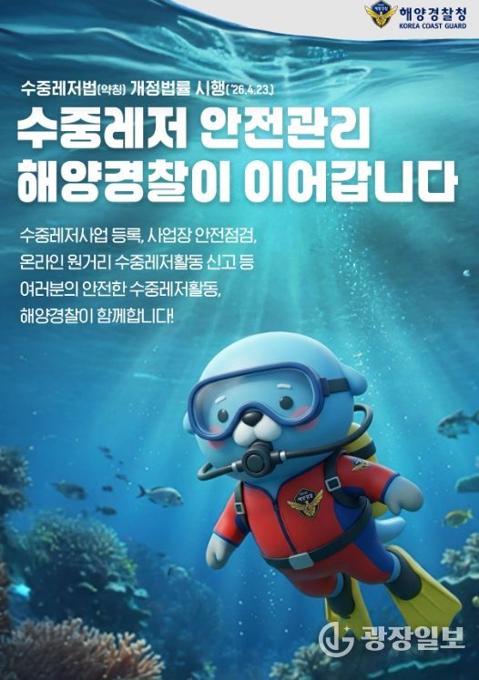 광장일보 주재영 기자 | 울진해양경찰서는 4월 23일부터 수중레저 안전관리 업무가 해양수산부에서 해양경찰청으로 완전히 일원화되어 시행된다고 밝혔다.