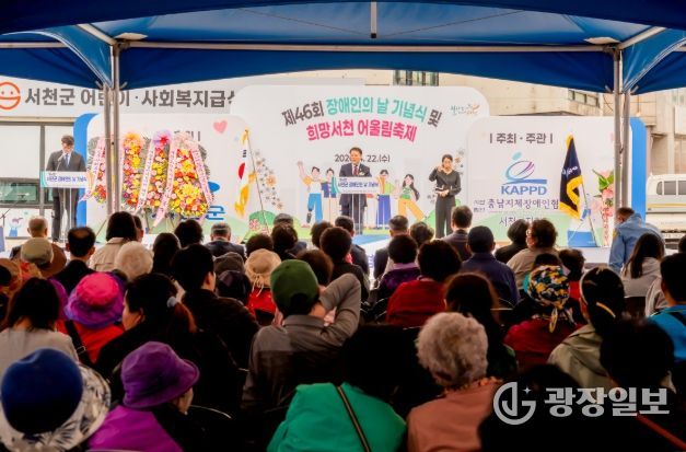 광장일보 나학천 기자 | 서천군은 제46회 장애인의 날을 맞아 지난 22일 봄의마을 광장에서 ‘장애인의 날 기념식 및 희망서천 어울림축제’를 성황리에 개최했다.
