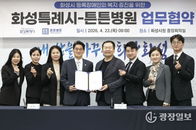 광장일보 나병석 기자 | 화성특례시는 23일 본관 2층 중앙회의실에서 튼튼병원과 화성시 등록장애인의 건강한 생활 지원과 삶의 질 향상을 위한 업무협약을 체결했다.