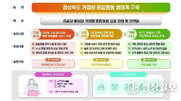 경로당 중심 통합돌봄 사업은 초고령사회에 진입한 경북도의 돌봄 사각지대를 해소하고, 시・군간 돌봄서비스 양극화 및 돌봄 격차의 구조적 문제를 해결하기 위한 사업이다.