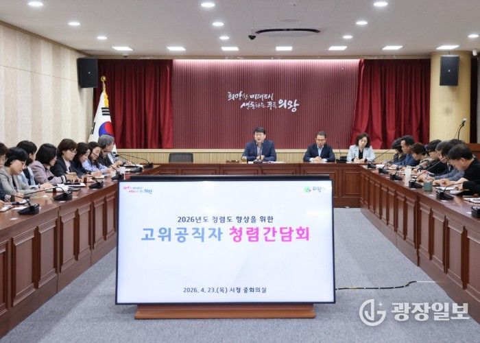 광장일보 주재영 기자 | 의왕시가 4월 23일 시청 중회의실에서 고위공직자를 대상으로 청렴간담회를 개최하고, 청렴도 향상을 위한 정책 추진 기반 마련에 나섰다.