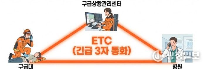 ETC는 구급대와 구급상황관리센터, 의료기관을 동시에 연결하는 긴급 3자 통화 방식으로, 중증응급환자 발생 시 현장에서 환자 상태를 실시간으로 공유하고 의료기관의 수용 가능 여부를 즉시 확인할 수 있도록 구축한 현장 중심 대응체계다.
