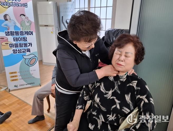 광장일보 주재영 기자 | 고성군농업기술센터는 2026년 고성군 시군역량강화사업의 일환으로 4월부터 9월까지 112개 마을을 대상으로 마을활동가 23명이 참여하는 '배후마을로 찾아가는 건강배달부(생활통증케어 테이핑)' 활동을 시작한다.