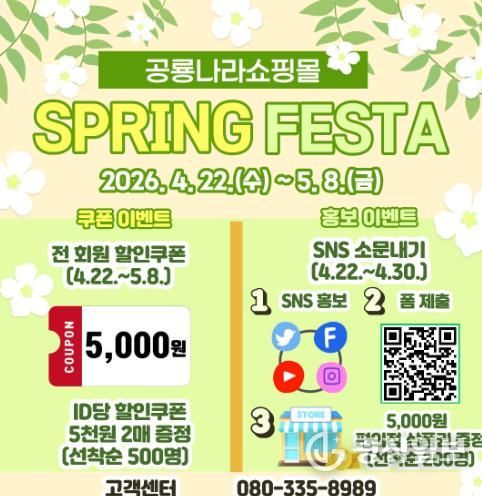 광장일보 주재영 기자 | 고성군은 봄철을 맞아 지역 우수 농특산물의 홍보와 판매 촉진, 공룡나라쇼핑몰 활성화를 위해 5월 8일까지 ‘공룡나라쇼핑몰 봄 행사(SPRING FESTA)’를 운영하고 있다.