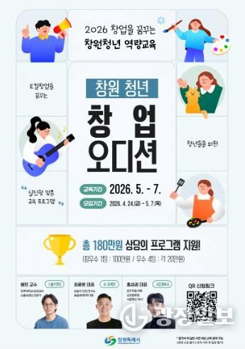 정성림 창원시 청년정책담당관은 “이번 청년 창업 오디션은 단순한 이론 교육을 넘어 현업 전문가들의 밀착 멘토링과 실질적인 사업화 지원을 받을 수 있는 좋은 기회”라며, “창원의 미래를 이끌어갈 참신한 아이디어를 가진 청년들의 많은 관심과 참가를 바란다”고 말했다.