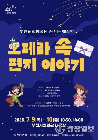 연주는 부산시립청소년교향악단이 맡으며, 이동신 교수의 지휘와 함께 더해질 해설은 관객의 이해를 돕고 공연의 재미를 한층 높일 예정이다. 공연은 오는 7월 9일(목)과 10일(금) 이틀간 오전 10시 30분, 오후 2시 하루 2회씩 총 4회에 걸쳐 부산시민회관에서 열린다. 현재 부산시내 초·중·고등학생을 대상으로 관람 예약이 진행 중이다.