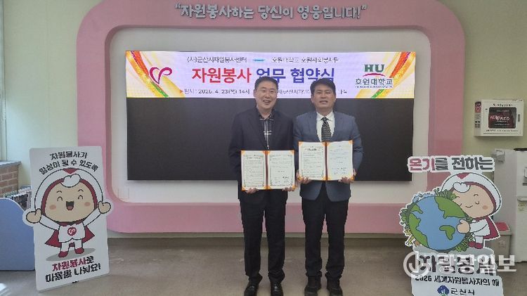 광장일보 주재영 기자 | (사)군산시자원봉사센터(이사장 황진)는 4월 23일 군산시자원봉사센터 세미나실에서 호원대학교 호원사회봉사단(단장 서충길)과 지역사회 연계 봉사활동 활성화를 위한 업무협약(MOU)을 체결했다.