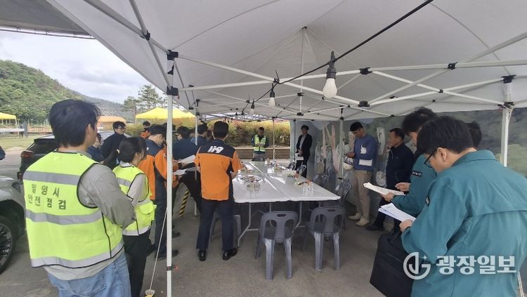 이번 점검에는 경상남도, 밀양시, 밀양경찰서, 밀양소방서, 한국전기안전공사, 한국가스안전공사 및 건축 분야 전문가 등 20여 명이 참여해 행사장 전반을 꼼꼼히 살폈다.