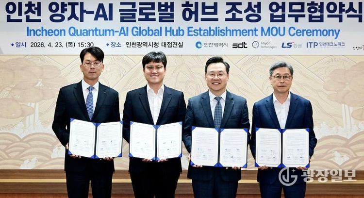 광장일보 주재영 기자 | 인천광역시는 ㈜에스디티(이하 ‘SDT’), 미국 Anyon Computing(이하 ‘Anyon’), LS증권, 인천테크노파크와 함께 ‘양자-AI 글로벌 허브 조성’을 위한 업무협약(MOU)을 체결했다고 밝혔다.