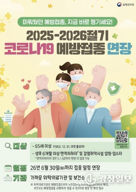 광장일보 이현나 기자 | 청주시 보건소는 당초 이달 말까지 운영 예정이었던 ‘2025~2026절기 코로나19 예방접종’을 오는 6월 30일까지 연장한다고 24일 밝혔다.