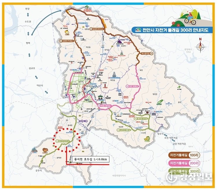 광장일보 =주재영 기자 | 천안시가 추진해온 '자전거 둘레길 300리 조성사업'이 마지막 단계에 들어섰다.