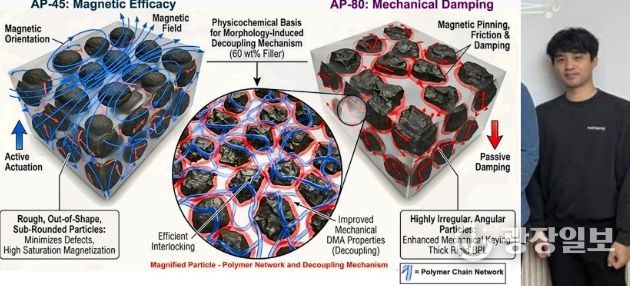 김병현 학생 연구팀은 외부 자기장에 따라 물리적 성질이 변하는 스마트 소재인 '자기유변탄성체(MRE)'의 성능을 획기적으로 조절하는 새로운 메커니즘을 규명했다.