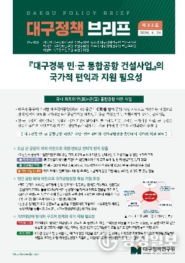 대구광역시는 대구정책연구원과 함께 ‘대구경북 민·군 통합공항 건설에 따른 국가적 편익과 지원 필요성’을 체계적으로 분석한 정책브리프를 4월 24일 발간했다.