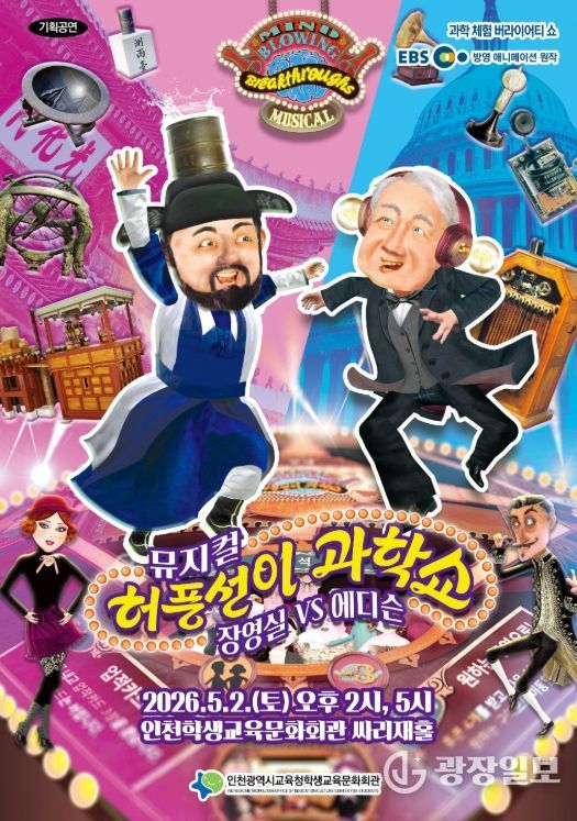 광장일보 주재영 기자 | 인천광역시교육청학생교육문화회관은 5월 2일 대공연장 싸리재홀에서, 과학 체험 버라이어티 쇼 ‘허풍선이 과학쇼: 장영실 VS 에디슨’ 기획 공연을 개최한다.
