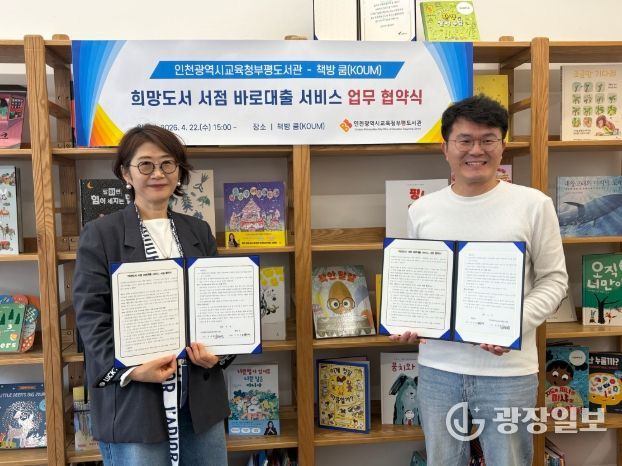 광장일보 주재영 기자 | 인천광역시교육청부평도서관은 지난 22일 '책방 쿰'과 ‘희망도서 서점 바로대출 서비스’ 업무협약을 체결했다.
