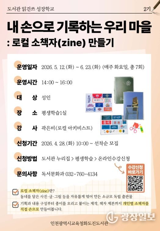 광장일보 주재영 기자 | 인천광역시교육청화도진도서관은 오는 28일부터 지역의 일상을 기록으로 담아내고 공유하는 시민 참여형 프로그램 ‘내 손으로 기록하는 우리 마을’의 참여자를 모집한다.