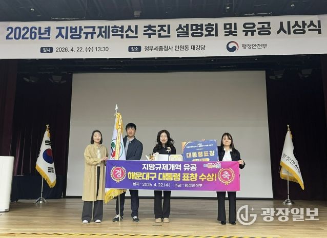 해운대구 관계자는 “이번 대통령 표창은 규제 해소를 위해 현장에서 묵묵히 노력해 온 직원들이 함께 이뤄낸 값진 성과”라며 “앞으로도 구민과 기업이 체감할 수 있는 실질적인 규제혁신 및 적극행정을 지속적으로 추진해 지역 경쟁력과 행정 신뢰도를 높여 나가겠다”고 말했다.