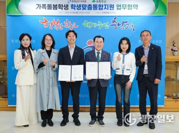 광장일보 주재영 기자 | 충남교육청은 24일, 도교육청 접견실에서 충남교육청 관계자와 초록우산 충남지역본부 관계자들이 참석한 가운데, ‘가족돌봄학생’의 건강한 성장을 지원하기 위한 업무협약을 체결했다고 밝혔다.