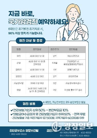 보건소 관계자는 “암은 조기 발견이 무엇보다 중요한 질환”이라며 “군민들이 정기적인 검진을 통해 건강을 관리할 수 있도록 홍보를 지속해 나가겠다”고 말했다.