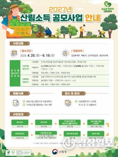 광장일보 주재영 기자 | 고흥군은 임산물 생산 기반 확충과 임업 경쟁력 강화를 위해 ‘2027년도 산림소득사업(임산물생산단지 규모화)’ 공모사업 신청을 오는 6월 19일까지 접수한다고 밝혔다.