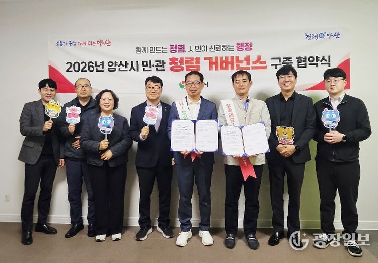 광장일보 주재영 기자 | 양산시 미래혁신국(국장 장병조)은 투명하고 공정한 행정 실현을 위해 관내 주요 유관기관과 ‘민·관 청렴 거버넌스 협약’을 체결했다고 밝혔다.