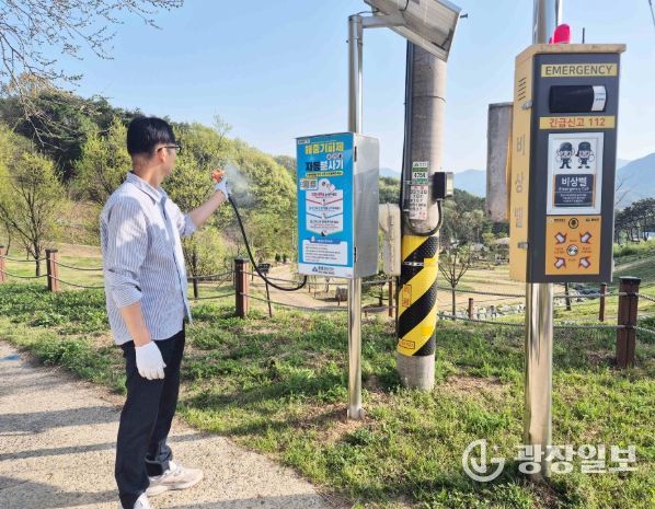 주요 점검 내용은 자동분사기 작동 여부와 분사 압력 확인, 태양광 패널 및 배터리 충전 효율 점검 등이다. 점검 결과, 기피제가 부족한 5개소는 현장에서 즉시 약품을 보충했으며, 기기 외관 청소와 주변 장애물 제거를 병행해 이용 편의를 높였다.